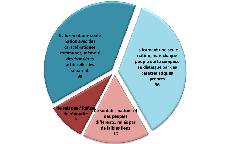 L’enquête révèle un fort sentiment d’unité arabe parmi les Syriens. Trois quarts des personnes interrogées (75 %) considèrent que les habitants du monde arabe forment une seule nation, malgré les frontières artificielles qui les séparent. Pour certains, cette unité se double de spécificités propres à chaque peuple, mais elle reste perçue comme un socle commun. Seuls 16 % estiment au contraire que les Arabes constituent des peuples distincts, liés entre eux par des liens faibles.