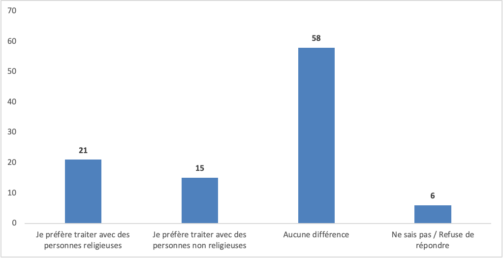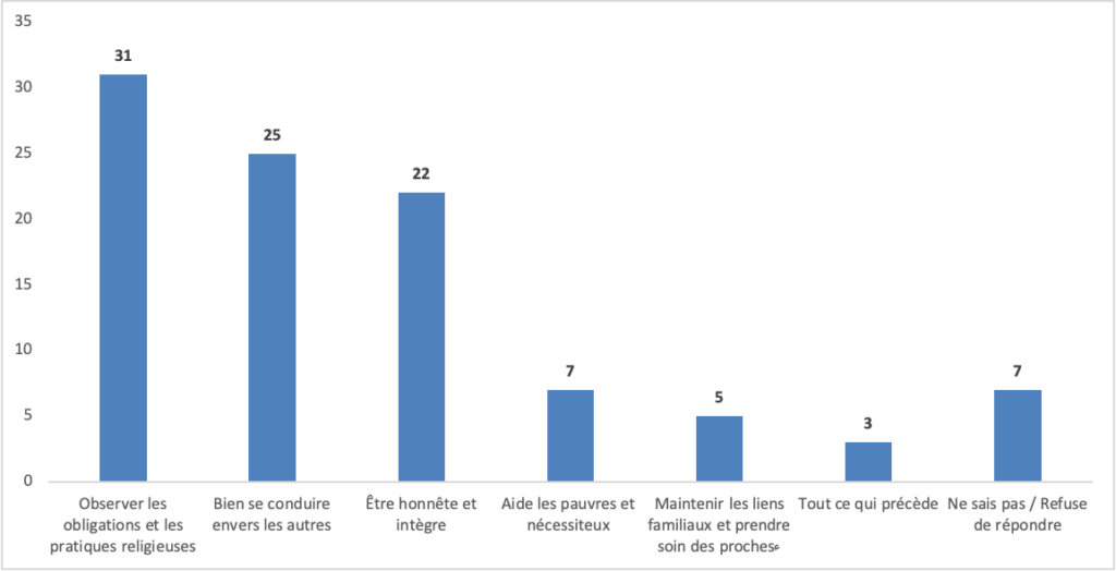 Le rapport à la religion suscite néanmoins des clivages. Ainsi, 15 % des personnes interrogées estiment qu’une personne non religieuse est forcément mauvaise, mais 75 % rejettent fermement cette affirmation. Sur le plan politique, une majorité de 57 % juge préférable de séparer la religion de la politique, contre 30 % qui défendent au contraire l’imbrication des deux sphères.