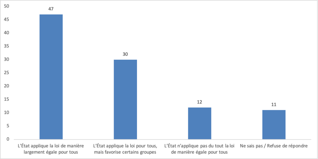Selon vous, l’État applique-t-il la loi de manière égale pour tous ? Choisissez l’affirmation qui reflète le mieux votre opinion
