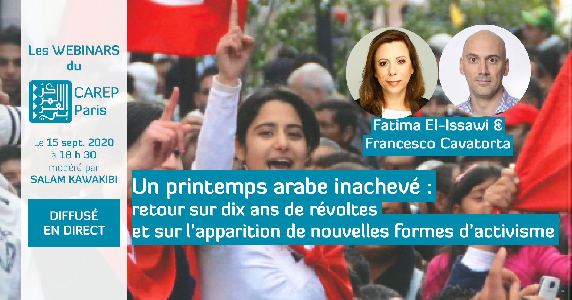 Dans le cadre des webinaires du CAREP Paris, rencontre avec F. EL-ISSAWI et F. CAVATORTA autour de leur ouvrage : "The unfinished arab spring", mardi ...