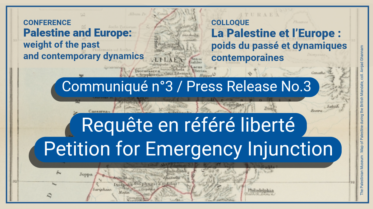 (English Below) Chères toutes, chers tous, Malheureusement, malgré nos efforts, nous n’avons trouvé aucune salle pour accueillir le colloque, qui ne pourra se tenir que dans des conditions extrêmement dégradées et uniquement en ligne. Une requête en référé liberté a été déposée hier auprès du Tribunal administratif de Paris. Nous espérons que le juge statue […]