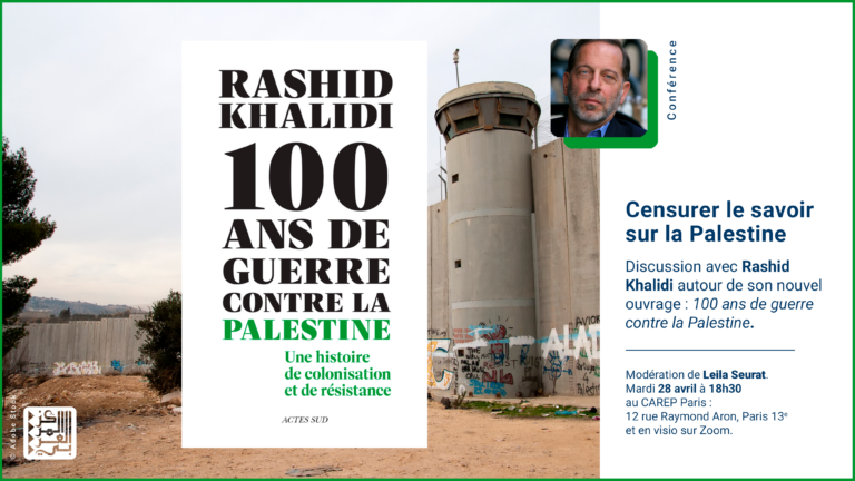 28/04/26 – Conférence avec Rashid Khalidi autour de son ouvrage “Cent ans de guerre contre la Palestine”, modération de Leila Seurat.